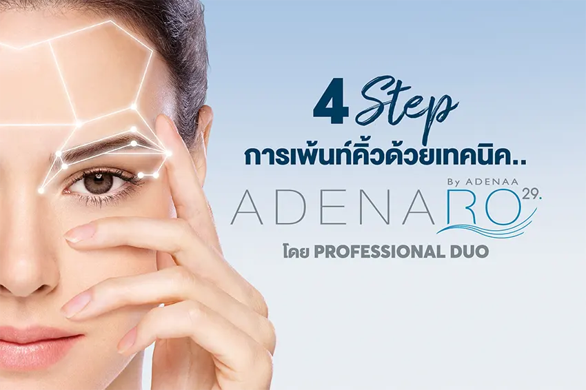เพื่อความสมจริง เพื่อความเป็นธรรมชาติของลายเส้น และเพื่อความเหมาะสมและรับกับรูปหน้า เอดีน่า ใช้ 4 STEP การเพ้นท์คิ้วด้วยเทคนิค “อดีนาโร” โดย Professional Duo ในการออกแบบและเพ้นท์คิ้วให้กับลูกค้าทุกๆ ท่าน