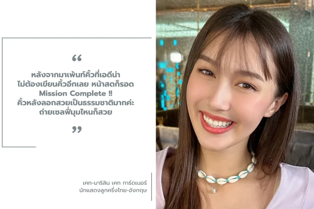 คุณเคท มาริลิน คอนเฟิร์ม หลังจากมาเพ้นท์คิ้วที่เอดีน่า ไม่ต้องเขียนคิ้วอีกเลย หน้าสดก็รอด Mission Complete คุณเคท – มาริลิน เคท การ์ดเนอร์ นักแสดงสาวลูกครึ่งไทย-อังกฤษ เจ้าของภาพจำจากบทบาท แม่หญิงบัว/ฟ้ารดา ในวัยเด็ก จากซีรีส์รีเมคเรื่อง ลิขิตรักข้ามดวงดาว เวอร์ชันไทย ขอจบปัญหา “คิ้วบาง คิ้วไม่เท่ากัน หางคิ้วตก” ด้วยการเพ้นท์คิ้วลายเส้นธรรมชาติ Hair Stroke ที่เอดีน่า