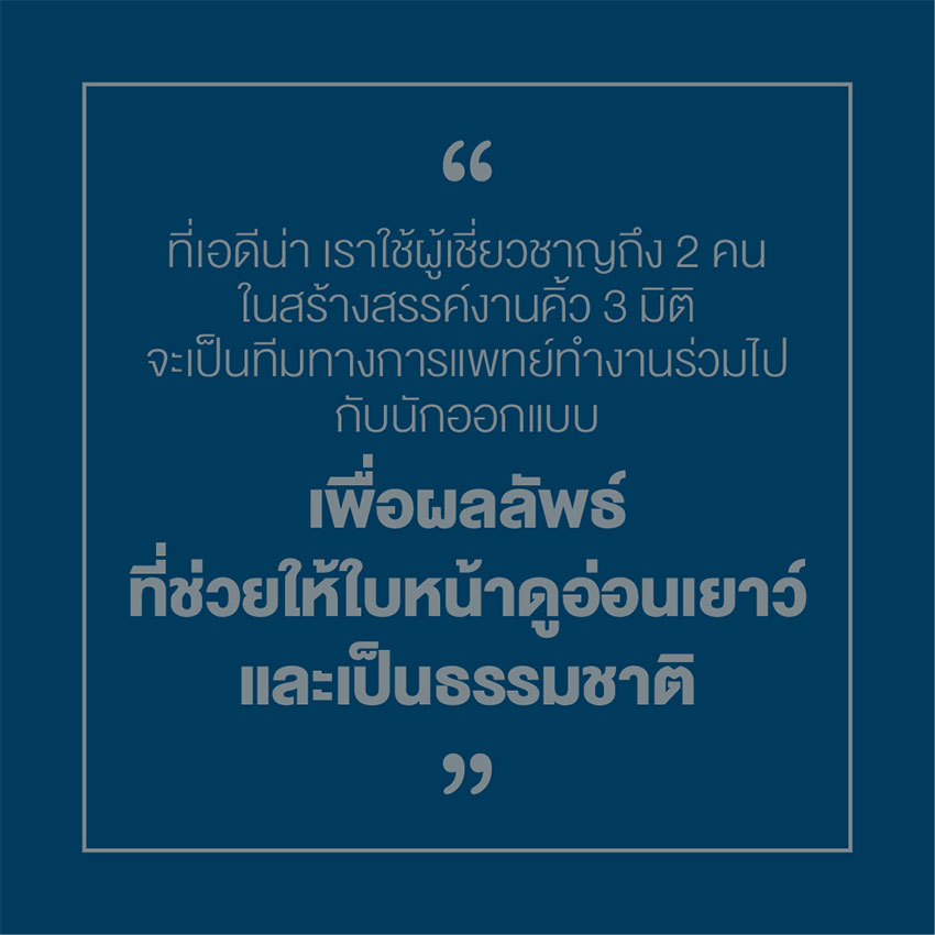At Adena, we use two experts to design and create 3D eyebrows. Our Professional Duo is the medical team. Work with designers who have been trained in designing all types of eyebrows for all ages and have experience in various types of eyebrows. It starts by considering the customer's problem: what type of facial sagging is there? And must be corrected by making eyebrows in a certain shape that will help the face look younger. Every step must be carefully considered. Because you have to notice the movements of the muscles on the customer's face as well. including designs that require meticulousness Responds to the shape of the face perfectly. To get 3D eyebrow results that help the face look brighter, noticeably younger and naturally.
