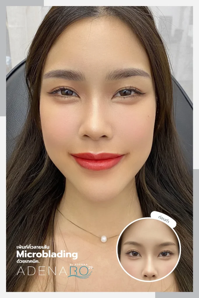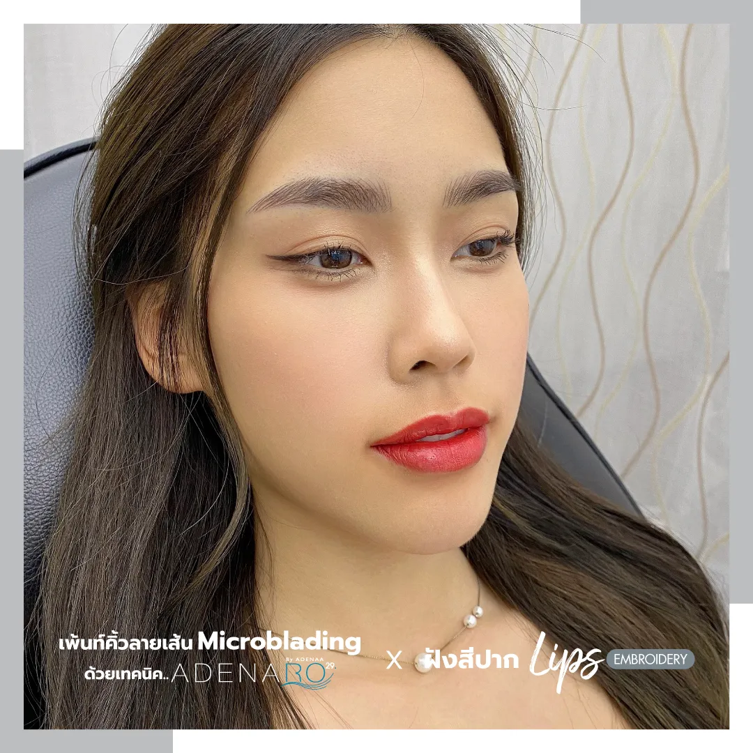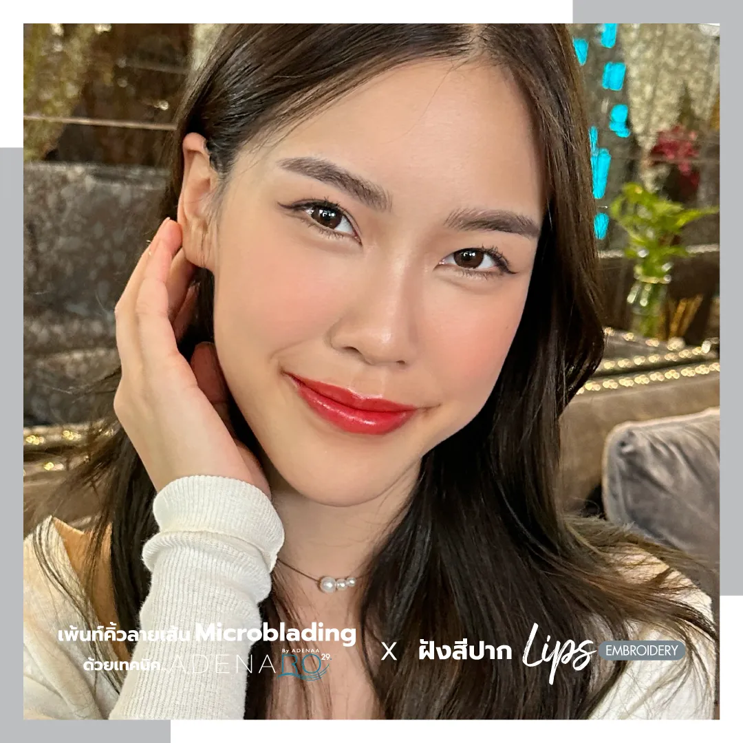 For those still hesitant, consider the review of Ms. Bew Thanatchaya's first-time eyebrow microblading and lips embroidery experience. She requested ADENAA's experts for natural-looking eyebrows and healthy-looking lips, aiming for a fresh appearance both with and without makeup, easier makeup application, long-lasting lipstick color, and vibrant pink lips.