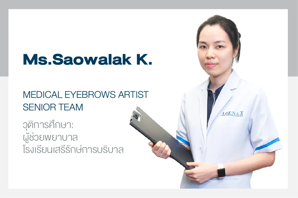 Eyebrow painting artist Meticulously and precisely according to the design and only those who have graduated in medical technology or nursing assistants Because when tattooing or painting must be given importance and have a deep understanding of maintaining cleanliness and sterility strictly according to various standards and procedures That is specified in Adenaro's advanced techniques.